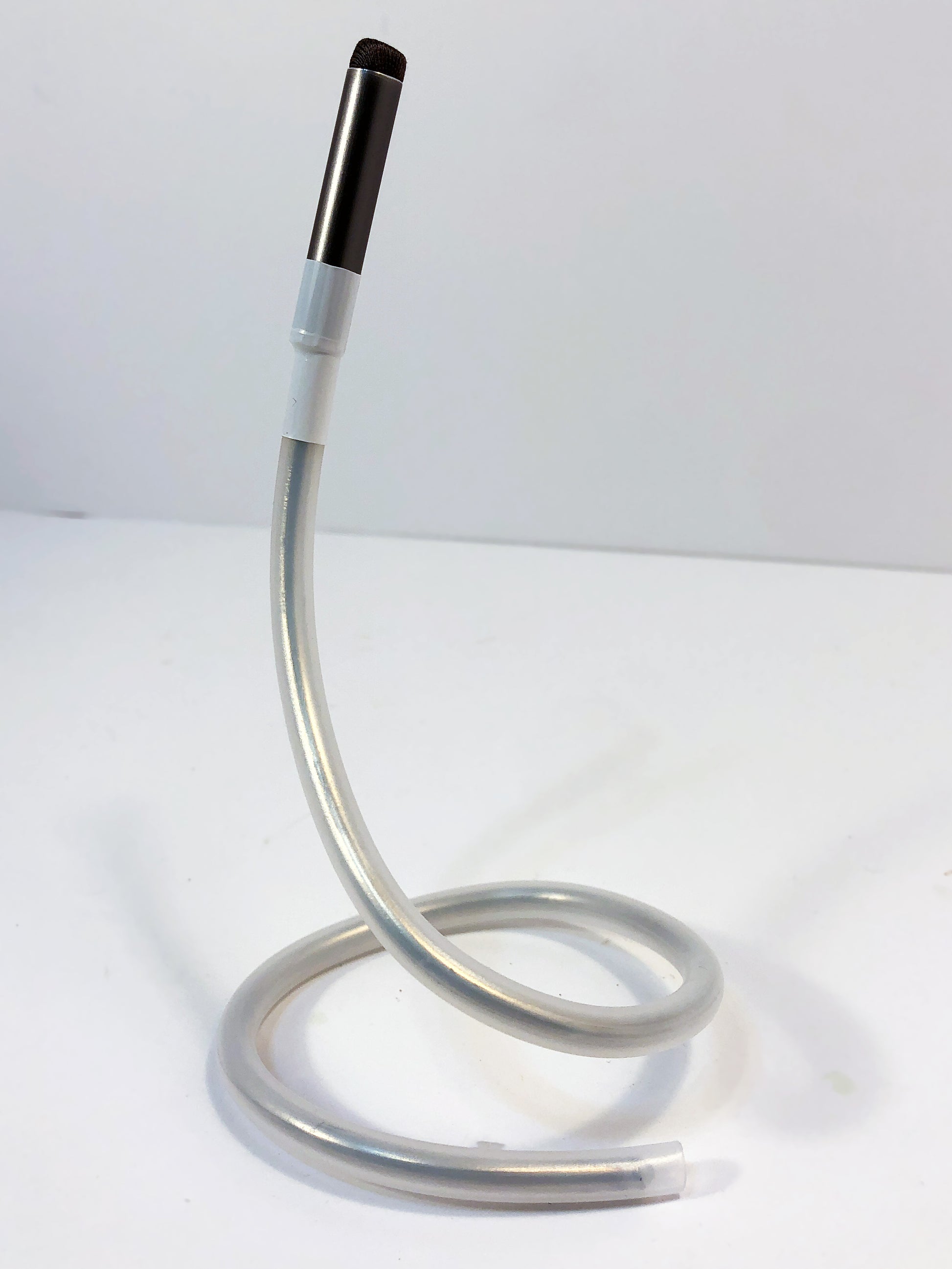 The body of the Caduceus is made from an aluminum core covered in a vinyl sleeve that allows it to be bent and reshaped many times. This allows the Caduceus to be wrapped and worn around the fingers, hand, wrist, or even elbow and used without the need to grip the stylus with the fingers or hand making it ideal for anyone that finds gripping a pen shaped device difficult. This includes individuals who need to use any kind of brace on their hands or wrists, often overcoming the issue of touch screens being unable to register contact.